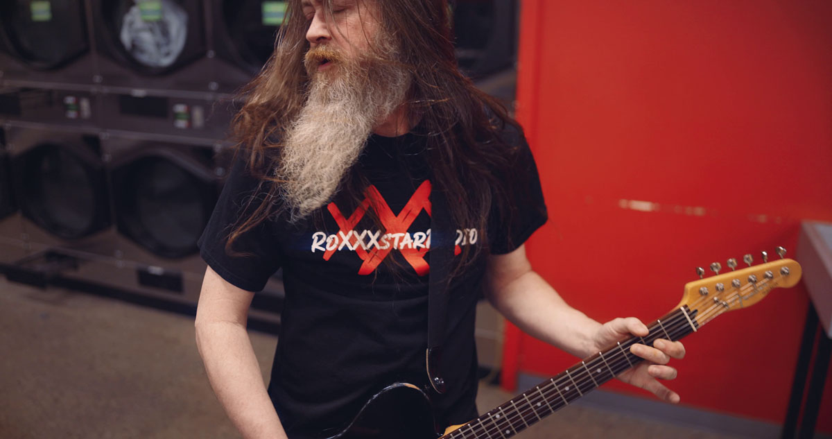 The band's footprint occupied a nice little nook surrounded by washers and dryers to minimize patron overshoot and maximize the vibe. The existing lighting was fairly intense dropped 8' leds with a cool color of around 5k kelvin. The existing lighting was ample but I did use a frontal kicker which I matched to color to give a slight frontal fill and have a little eye sparkle on the frontman. I used a single, low 4' Nanotube for this. I ran through 5-6 passes on the song covering each band member individually and the frontman twice. I used my favorite 2 lenses for this type of work, the Sigma Art 28mm f/1.4 and the Sigma Art 50mm f/1.4/ which I shot wide open. Given the ample light, I was able to shoot with low ISO with minimal noise. Every take was shot mounted on the DJI RS Pro 3 gimbal which is such a fantastic stabilizer and for good reason, you see them used everywhere. The guys gave an excellent performance as usual with exceptional vigor. We had mild concern about being too loud especially with the drums in a large, tile floored space. Cory's lip sync was spot on despite the PA's sync track being absorbed into the endless reverberation in the room. Shaggy was driving low & thick, Tommy was blazing the fretboard in a frenzy of hair and Terry was all energy behind the kit.